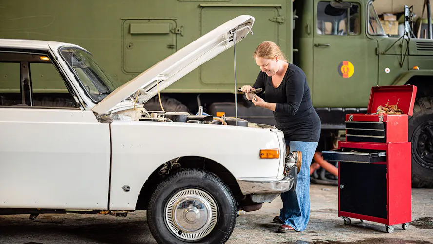 Jolien was niet technisch, maar knapte toch zelf haar oldtimer op. De oude Wartburg is een belangrijk onderdeel van haar hobby: geschiedenis naspelen.